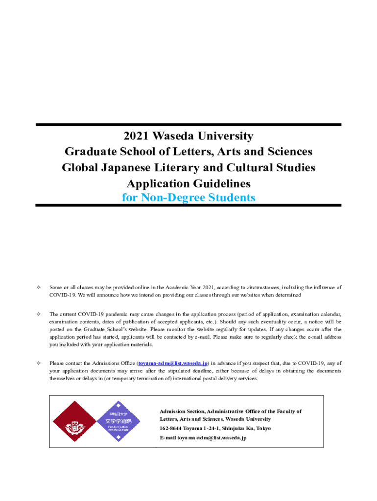 2021 Based University Graduate School of Letters, Arts and Sciences Global Japanese Literary and Cultural Studies Application Guidelines for NonDegree StudentsSome or all classes may be provided online