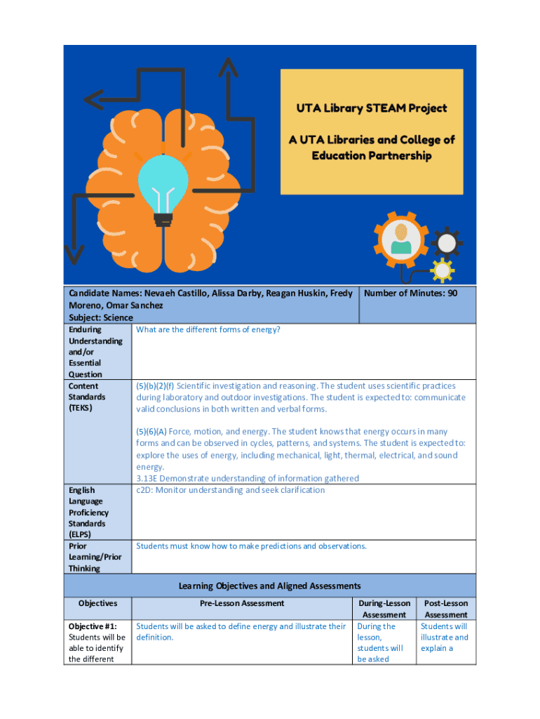 Candidate Names: Neva eh Castillo, Alissa Darby, Reagan Ruskin, Fred Moreno, Omar Sanchez Subject: Science Enduring Understanding and/or Essential Question Content Standards (TENS)English Language