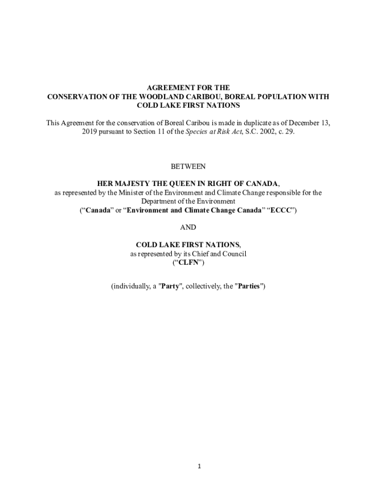 Get the free Agreement for the conservation of the Woodland Caribou, ... - publications gc