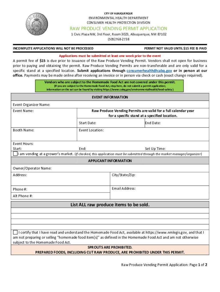 Obtain the necessary forms from the Albuquerque Environmental Health Department.