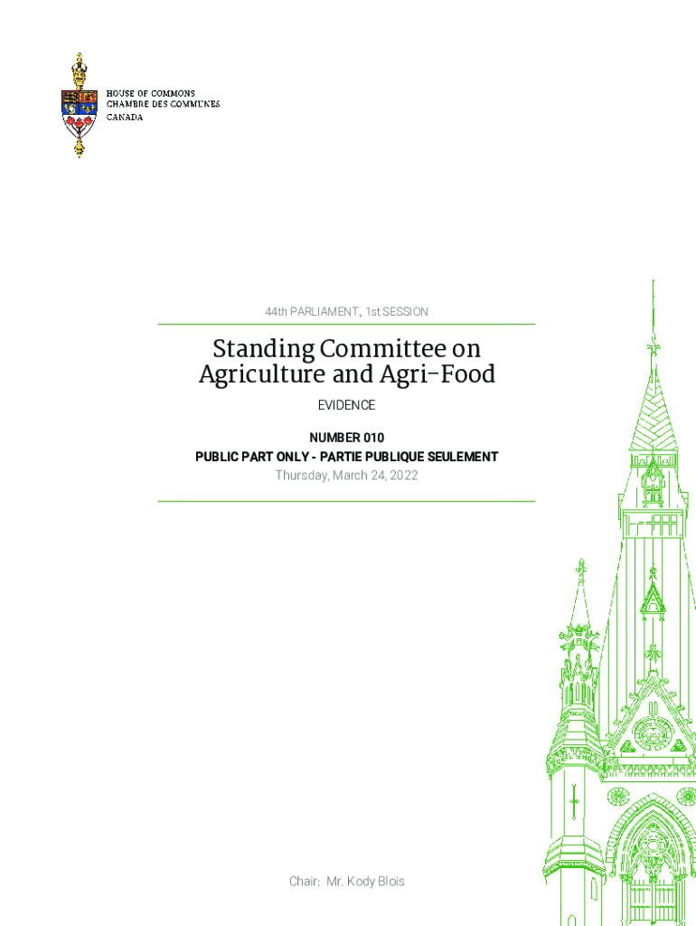 44th PARLIAMENT, 1st SESSIONStanding Committee on Agriculture and Agri-food EVIDENCE NUMBER 010 PUBLIC PART ONLY PARTIES OBLIQUE ELEMENT Thursday, March 24, 2022Chair:Mr. Body Blois1Standing Committee