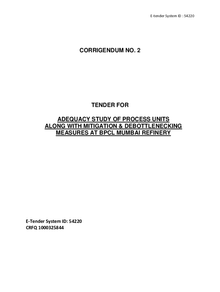 Tender System ID : 54220CORRIGENDUM NO. 2TENDER FOR