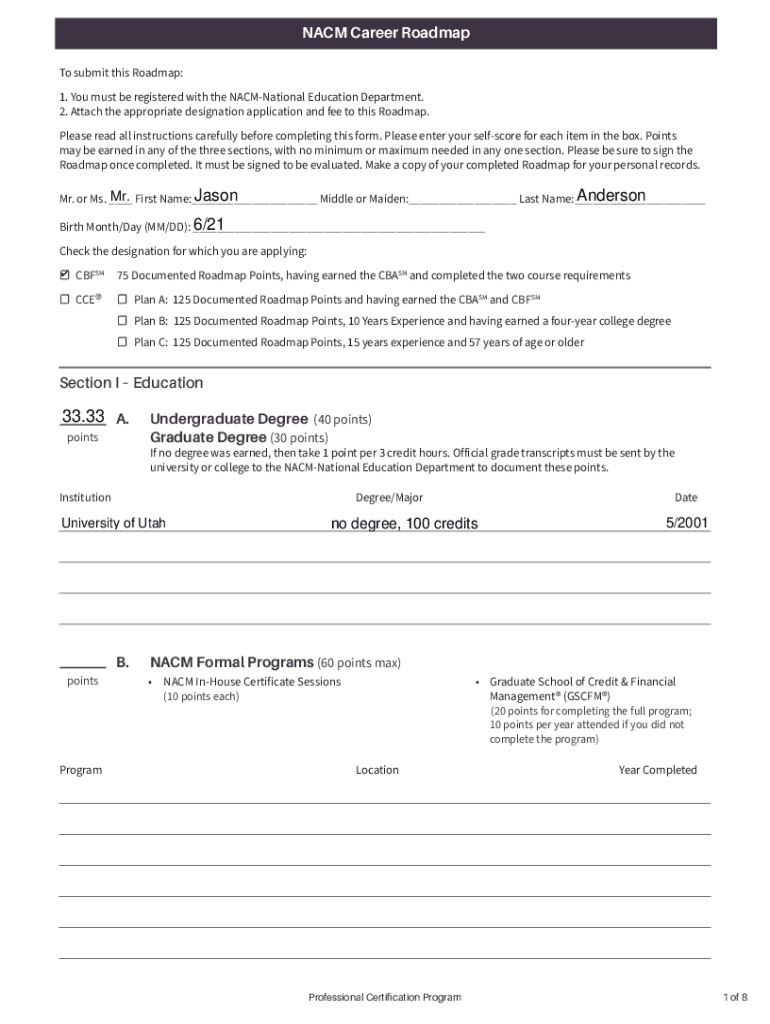 Email, fax, or share your nacm career roadmap section form via URL. You can also download, print, or export forms to your preferred cloud storage service.