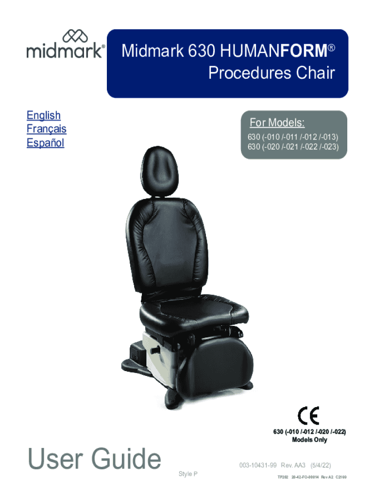 Obtener el gratis 003-10431-99 Midmark 630 Human Form Procedures Chair User Guide. Print color pa...