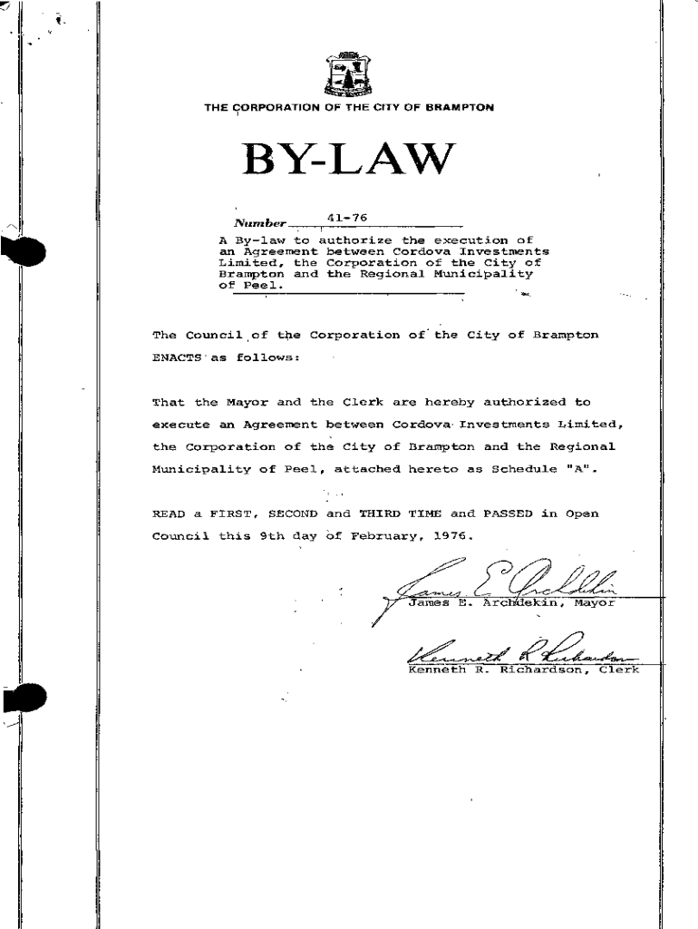 THE CORPORATION OF THE CITY OF BRAMPTON BYLAW Numberr4_l__7_6___A Bylaw to authorize the execution of an Agreement between Cordova Investments Limit, ted, the Corporation of the City of Brampton and