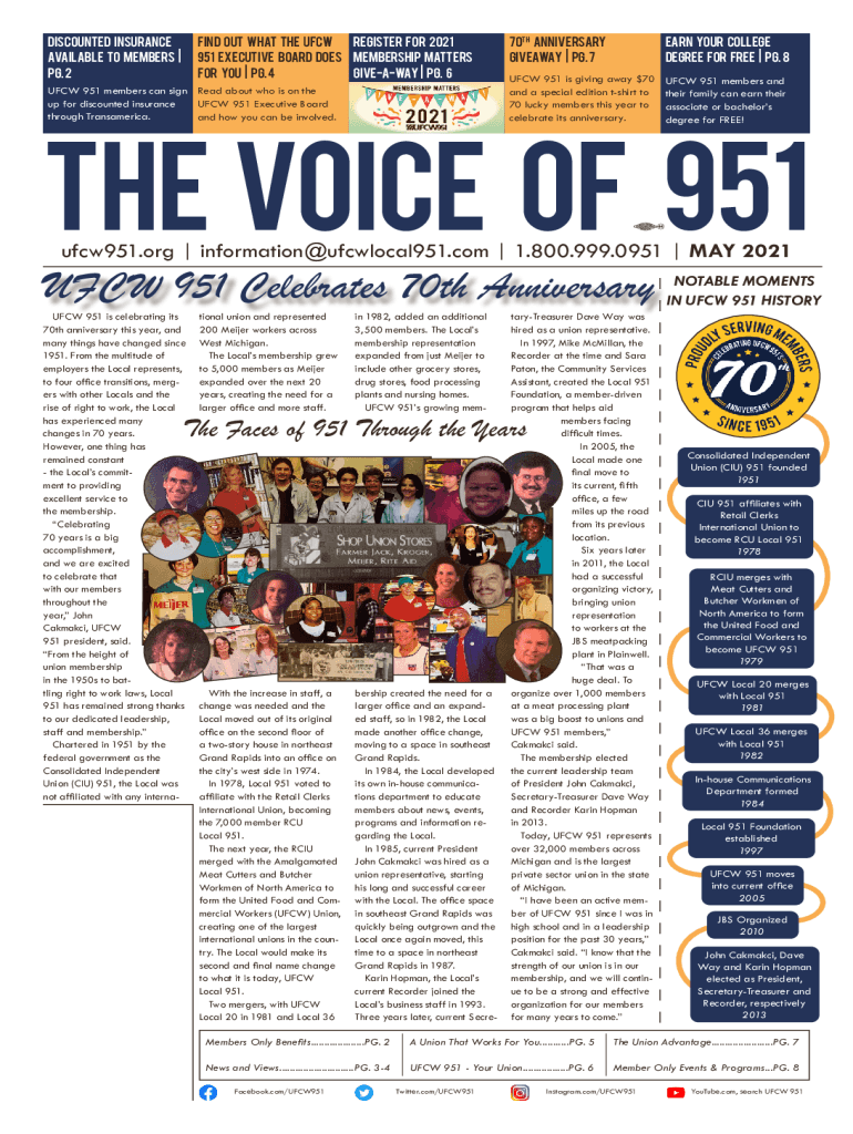 Discounted insurance available to members | Pg. 2Find out what the FCW Register for 2021 951 executive board does membership matters for you | Pg. 4 giveaway | pg. 6UFCW 951 members can sign Read