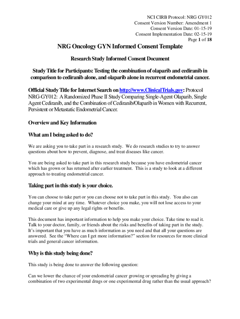 Consent Implementation Date: 021519-Page 1 of 18NRG Oncology GUN Informed Consent Template