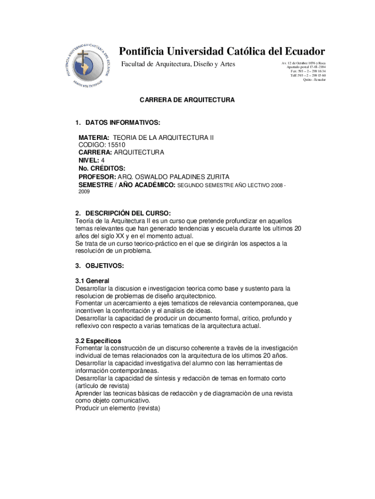 La teoría de la arquitectura debe ser presentada por el arquitecto encargado del proyecto.