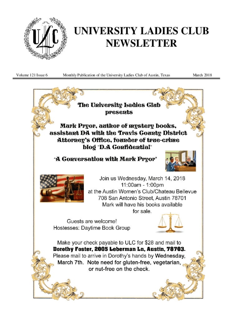 Fill out your university ladies club newsletter online with pdfFiller!