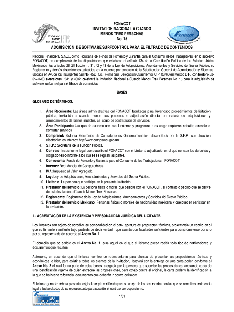 ACQUISITION DE SOFTWARE SURFCONTROL PARA EL FILTRATE DE CONTENDS