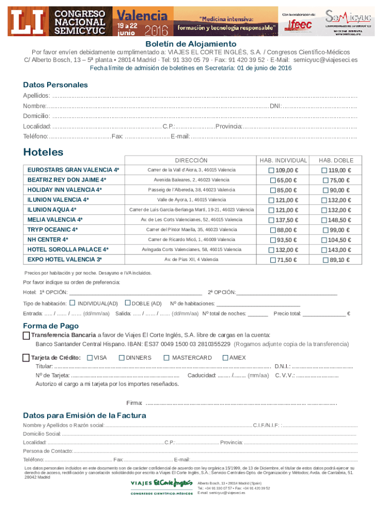 Boleyn de AlojamientoPor favor even debridement complimented a: VINES EL CORE IN GLS, S.A. / Congress CientficoMdicos