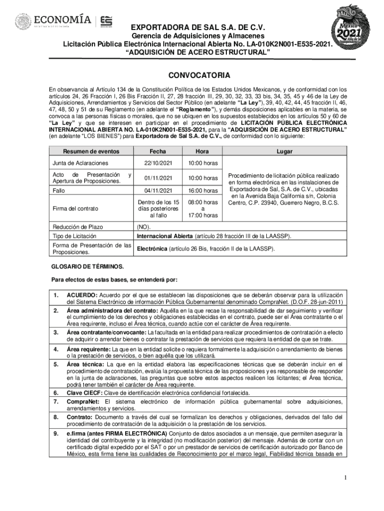 ACQUISITION DE AC ERO ESTRUCTURALCONVOCATORIA