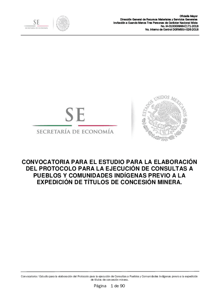 No. Intern ode Control DGRMSGI0262018CONVOCATORIA