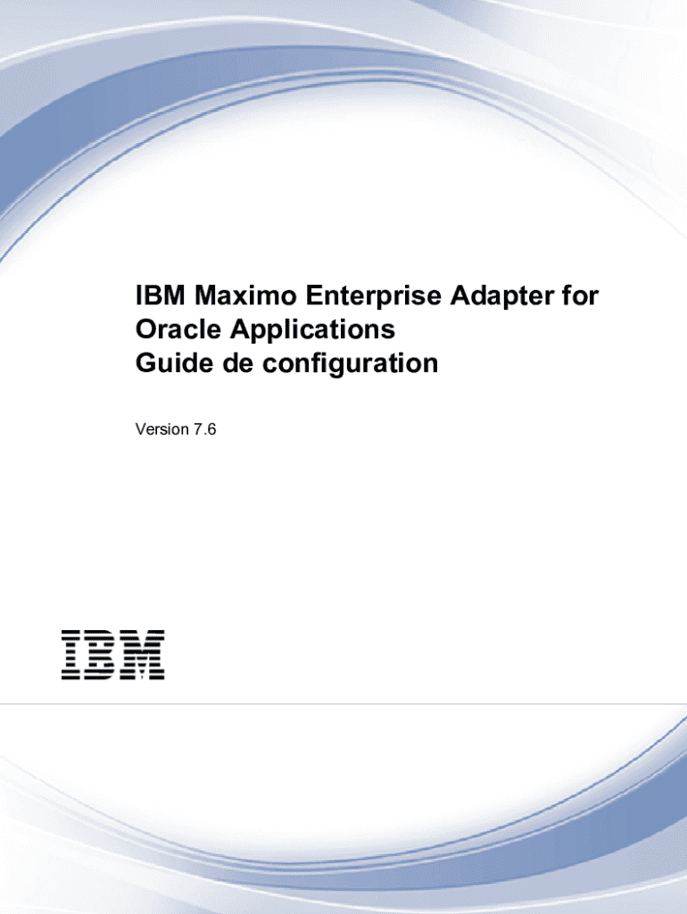 IBM Maximo Enterprise Adapter for Oracle Applications Guide de configuration Version 7.6Remarque Avantdutiliserleprsentdocumentetleproduitassoci, prenezconnaissancedesinformationsgnralesfigurantlasection