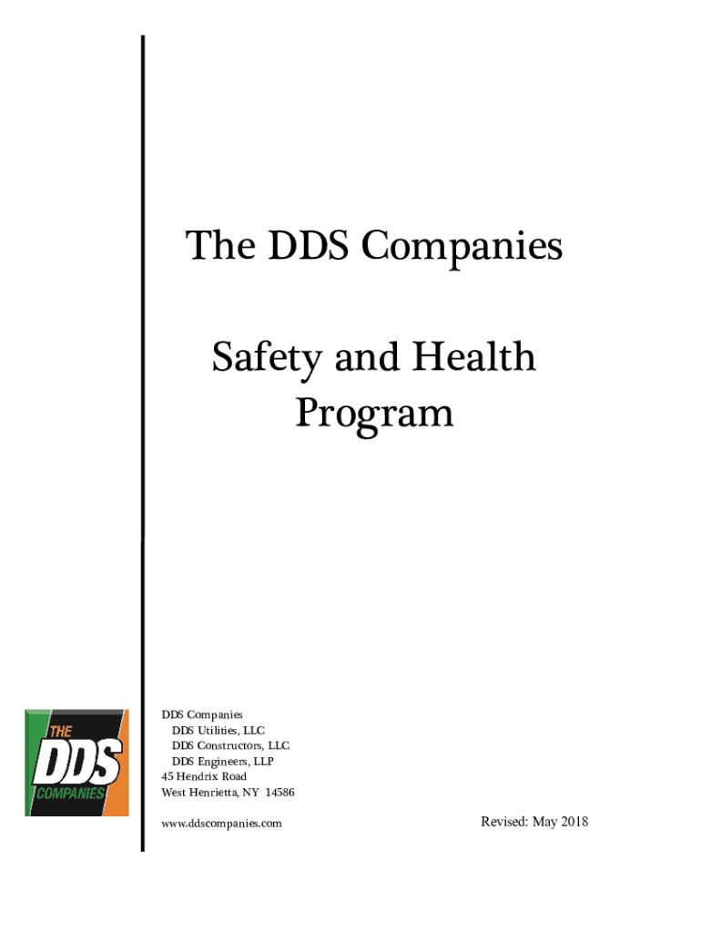 The DDS Companies Safety and Health Program DDS Companies DDS Utilities, LLC DDS Constructors, LLC DDS Engineers, LLP 45 Hendrix Road West Henrietta, NY 14586 www.ddscompanies.comRevised: May 2018DDS