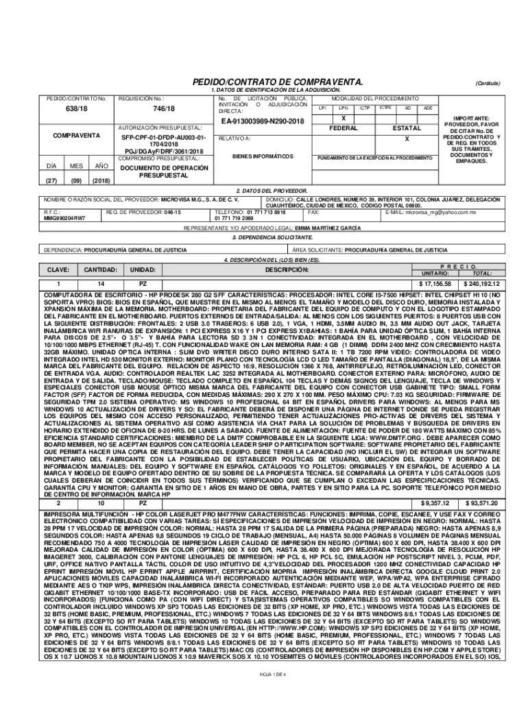 PEDRO/CONTRALTO DE COMPLACENT.(Cartel)1. DATES DE IDENTIFICATION DE LA ACQUISITION. PEDRO/CONTRALTO No. REQUISITION No.:638/18No. DE LIMITATION PBL ICA, INVITATION O ADJUDICATION DIRECT:746/18MODALIDAD
