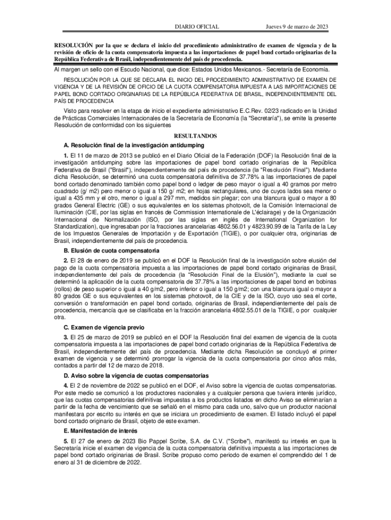DARIO OFICIALJueves 9 de Mario de 2023RESOLUCIN POR la Que SE declare el initio Del procedimiento administrative DE examen de Valencia y de la