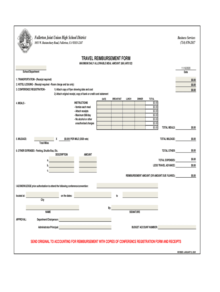 (714) 87028171051 W. Bastanchury Road, Fullerton, CA 928332247TRAVEL REIMBURSEMENT FORM