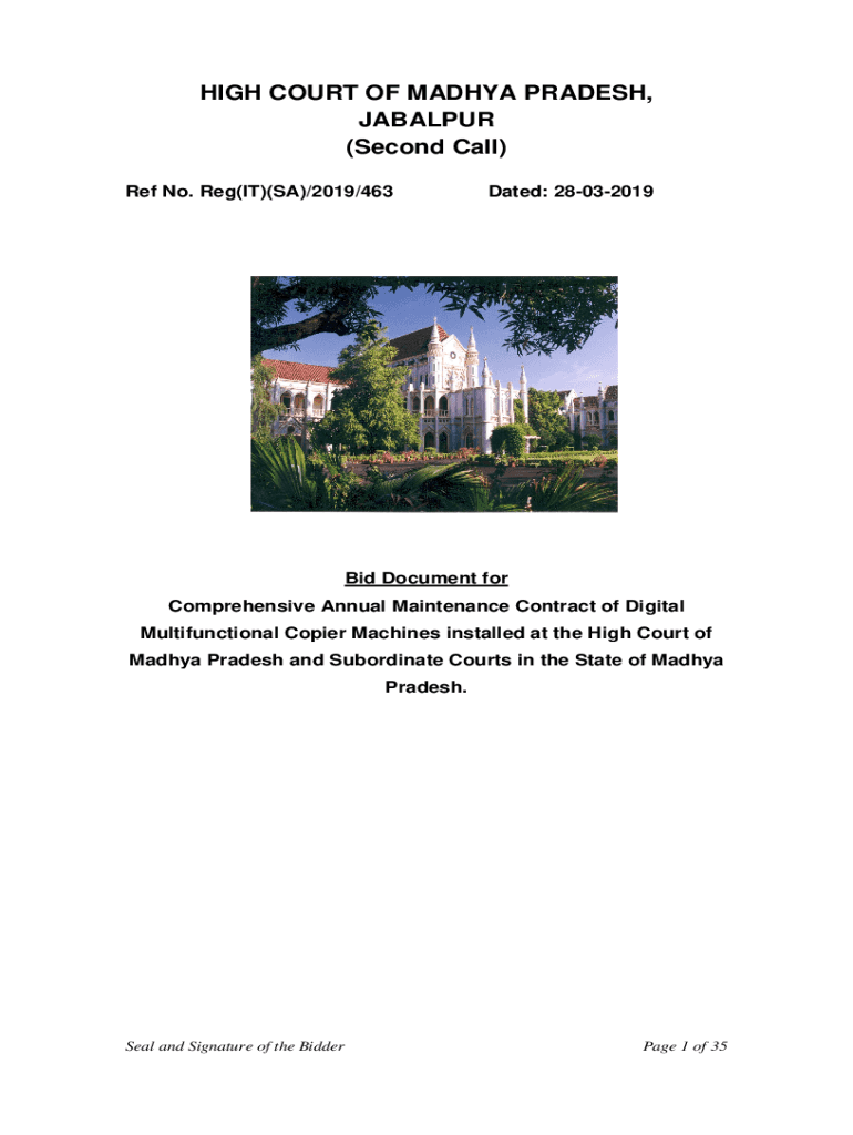 HIGH COURT OF MADHYA PRADESH, JABALPUR (Second Call) Ref No. Reg(IT)(SA)/2019/463Dated: 28032019Bid Document for Comprehensive Annual Maintenance Contract of Digital Multifunctional Copier Machines