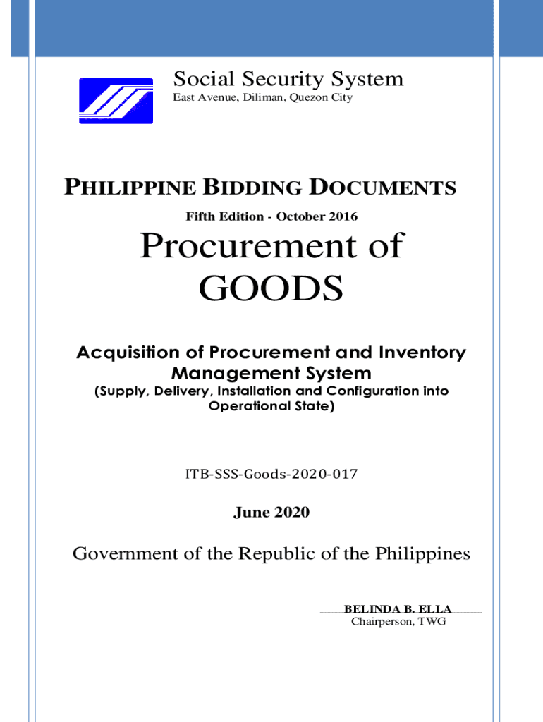Social Security System East Avenue, Dalian, Quezon CityPHILIPPINE BIDDING DOCUMENTS Fifth Edition October 2016Procurement of GOODS Acquisition of Procurement and Inventory Management System (Supply,