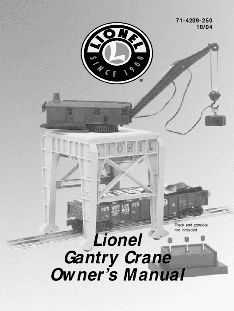 714209250 10/04Track and gondola not included Lionel Gantry Crane Owners ManualCongratulations! Congratulations on your purchase of the Lionel Gantry Crane! Use the controller to raise and lower the