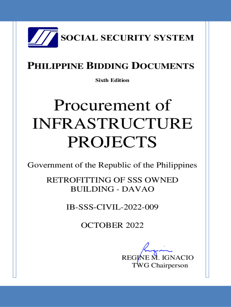 SOCIAL SECURITY SYSTEMPHILIPPINE BIDDING DOCUMENTS SOCIAL SECURITY SYSTEM Sixth EditionProcurement of SOCIAL SECURITY SYSTEM INFRASTRUCTURE PROJECTS SOCIAL SECURITY SYSTEM Government of the Republic