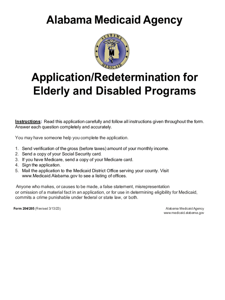 Alabama Medicaid AgencyApplication/Redetermination for Elderly and Disabled Programs Instructions: Read this application carefully and follow all instructions given throughout the form. Answer each