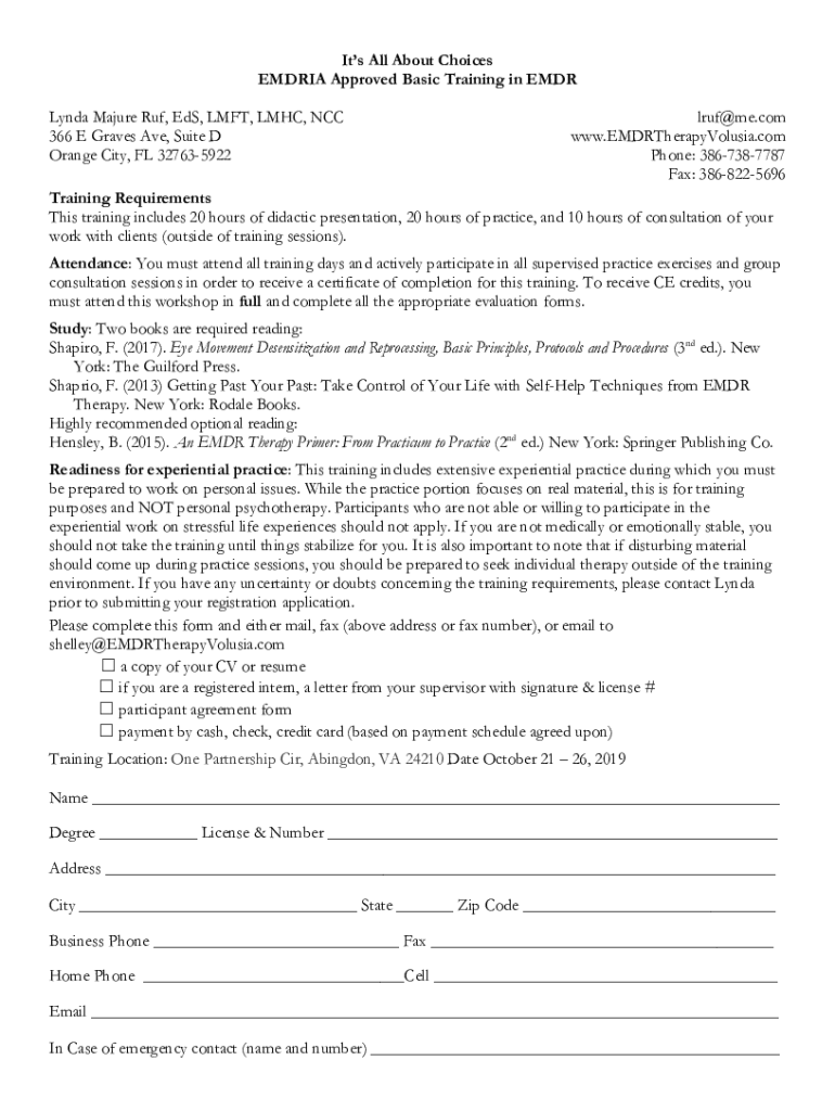 It's All About Choices EMD RIA Approved Basic Training in MDR Lynda Mature RUF, Eds, LEFT, MHC, NCC 366 E Graves Ave, Suite D Orange City, FL 327635922lruf@me.com www.EMDRTherapyVolusia.com Phone: