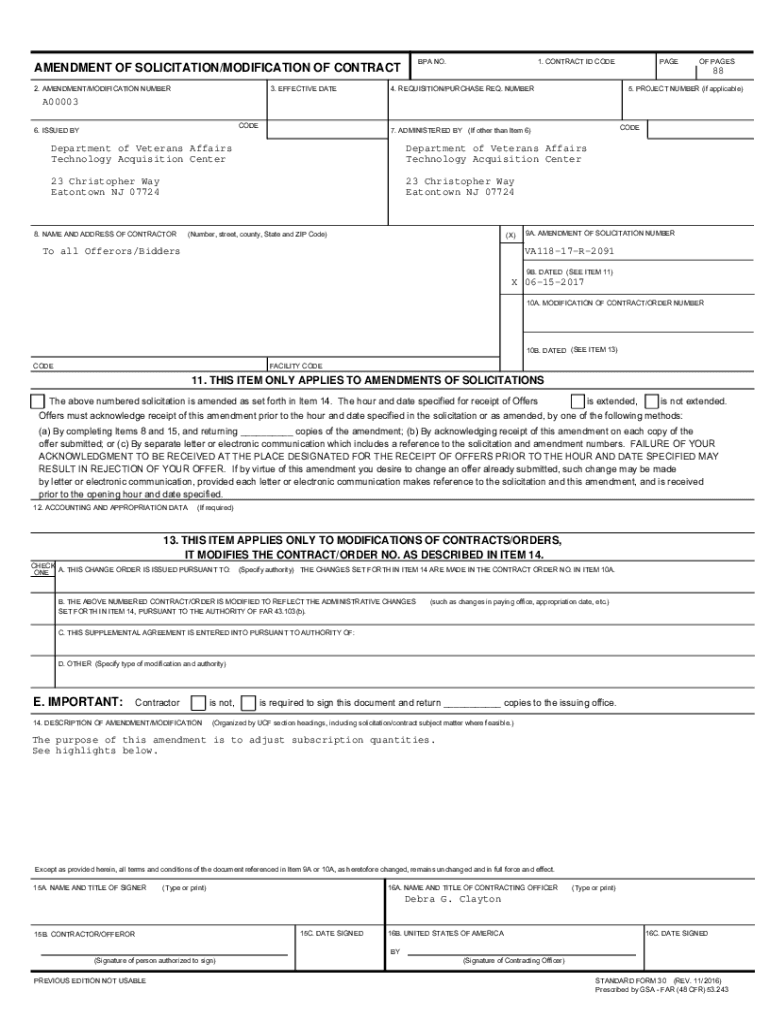 Get the free VA118-17-R-2091