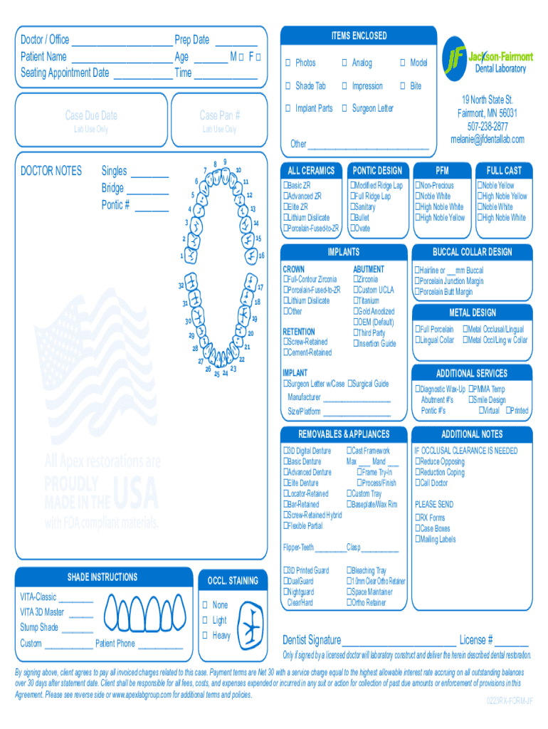 Case Due Date Case Pan #Lab Use OnlyPhotosAnalogModelShade TabImpressionBiteImplant