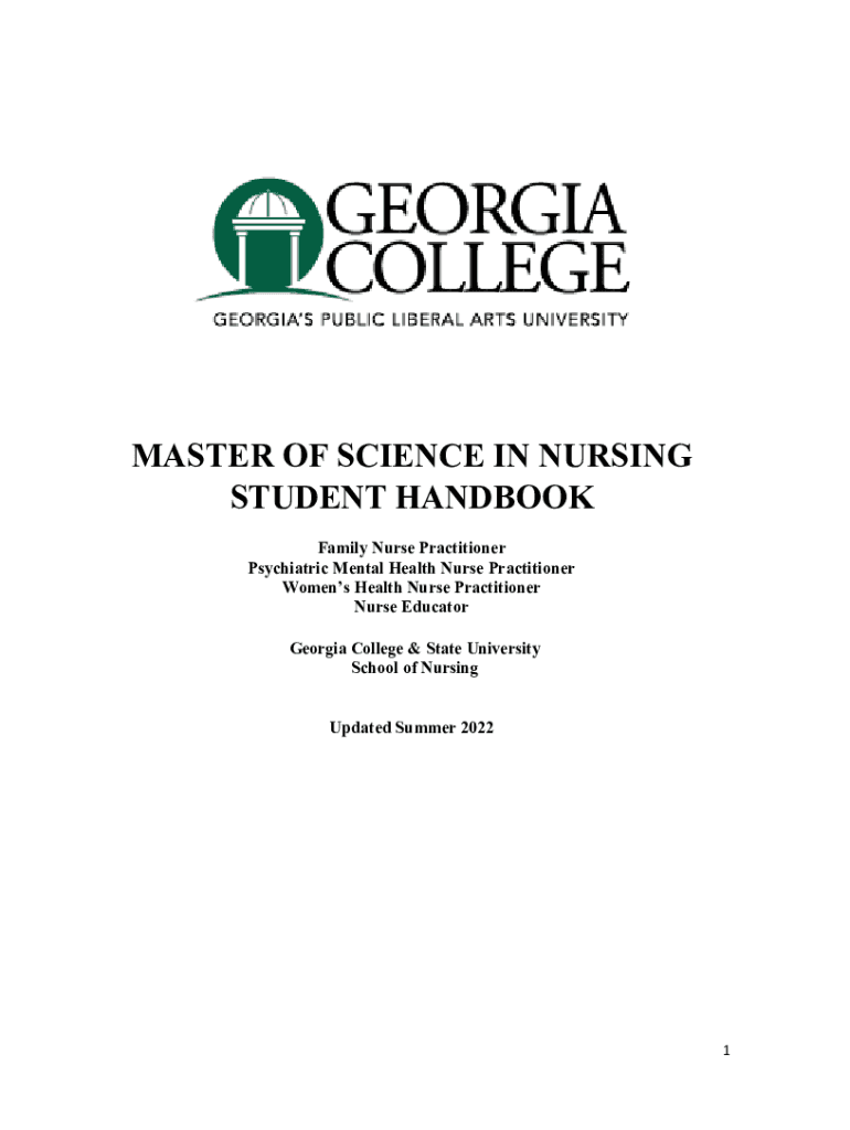 MASTER OF SCIENCE IN NURSING STUDENT HANDBOOK Family Nurse Practitioner Psychiatric Mental Health Nurse Practitioner Women's Health Nurse Practitioner Nurse Educator Georgia College & State University