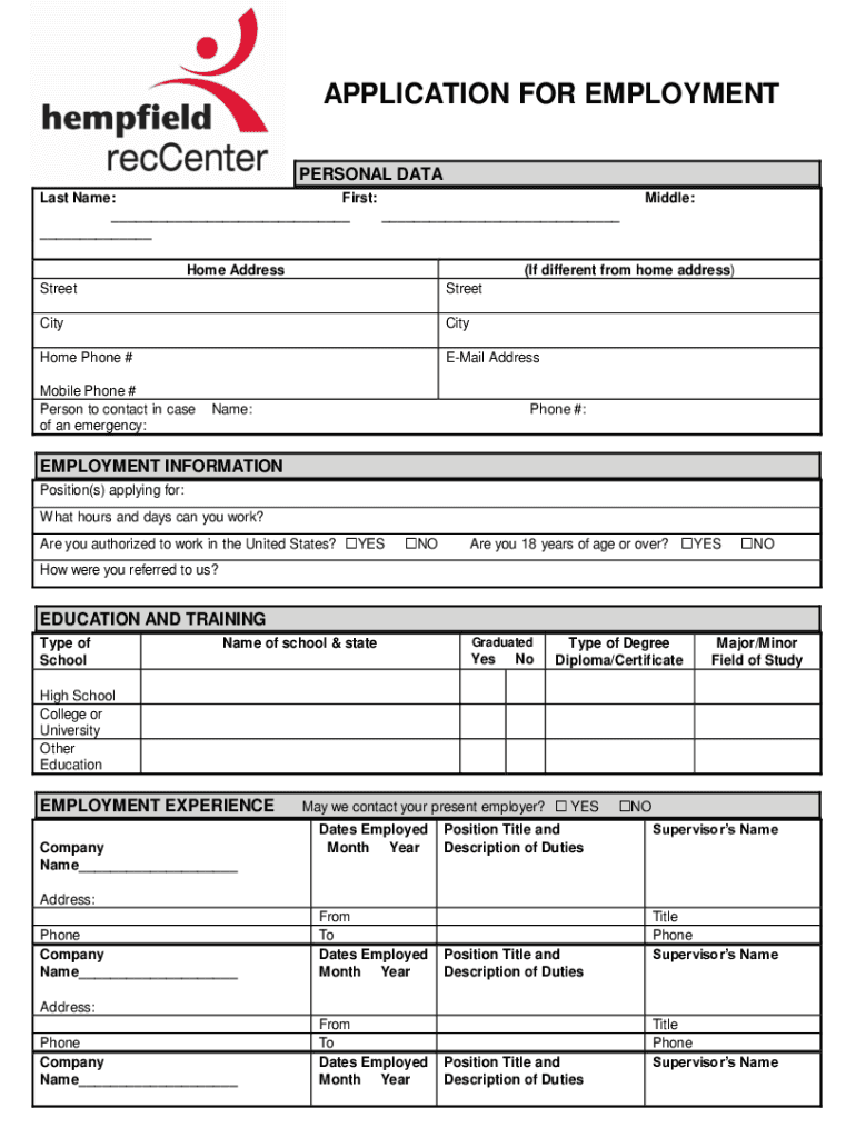 APPLICATION FOR EMPLOYMENT