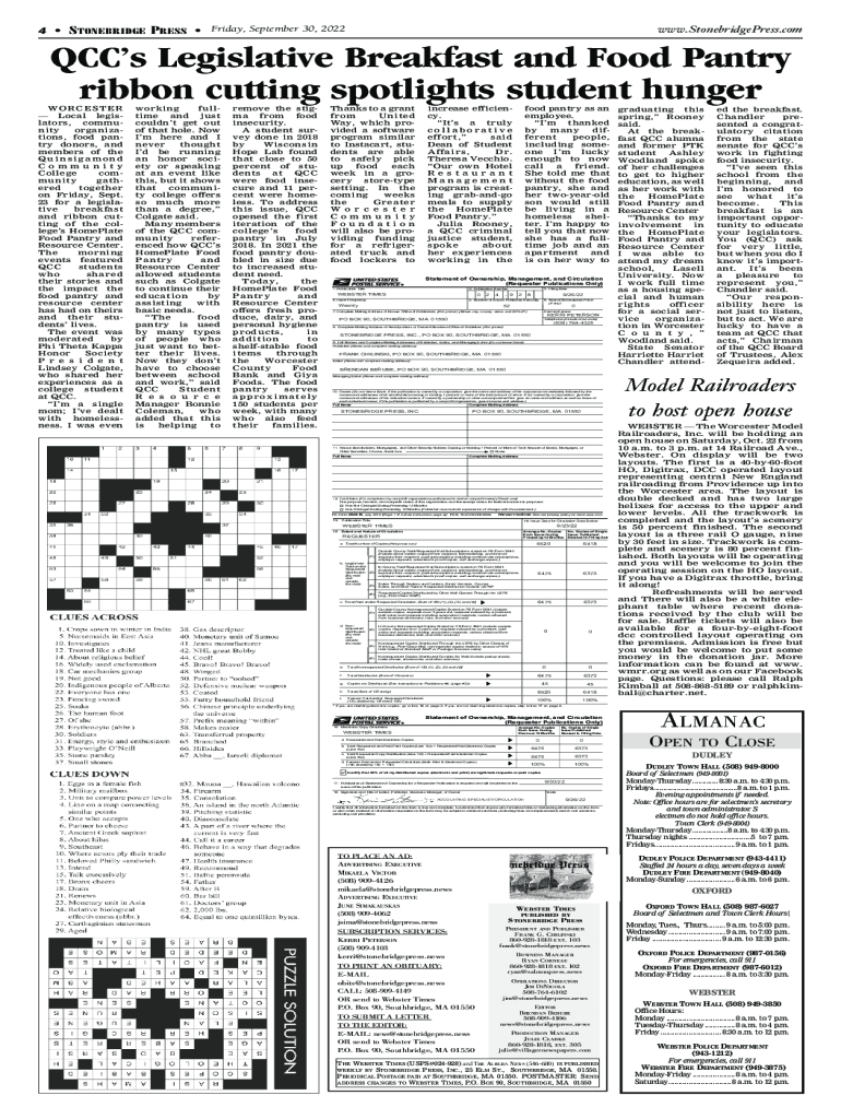 WWW. StonebridgePress.com4 STOCKBRIDGE PRESS Friday, September 30, 2022QCCs Legislative Breakfast and Food Pantry ribbon cutting spotlights' student hungerWORCESTER Local legislators, community organizations,