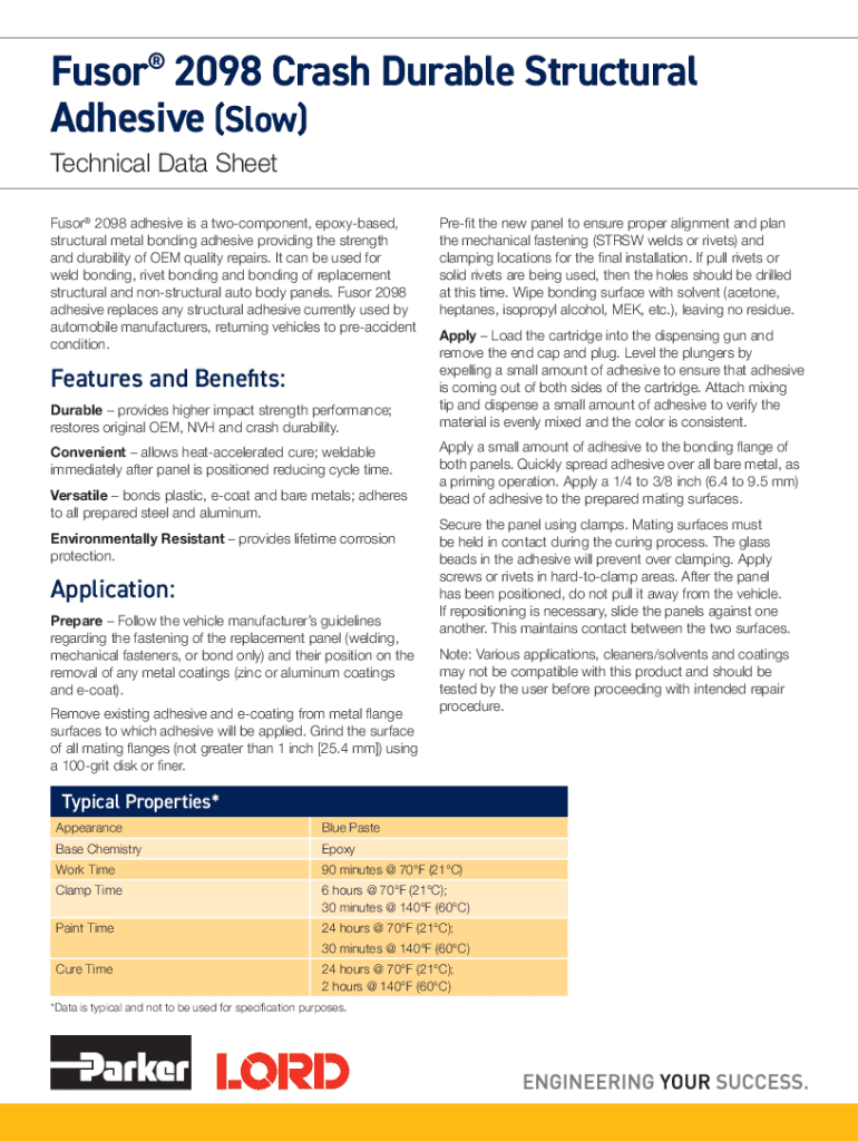 Get the free Fusor 2098 Crash Durable Structural Adhesive (Slow) - Parker