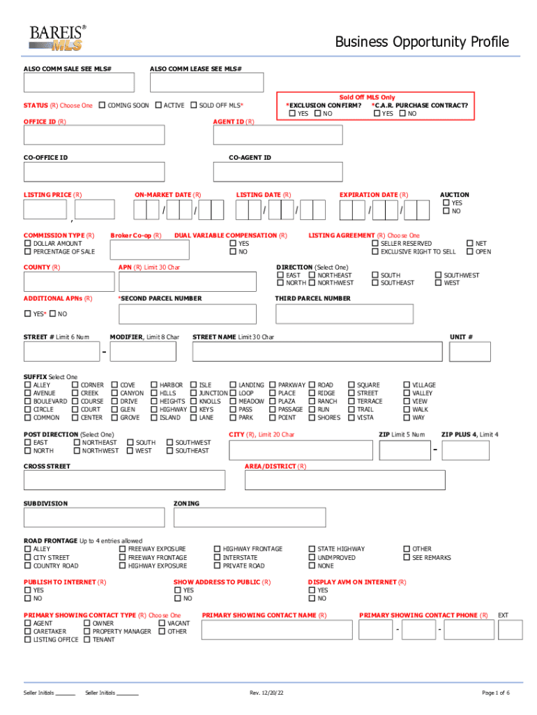 Real estate agents, brokers, and other professionals using the Bright MLS system are required to file profile sheets for each listing or property.