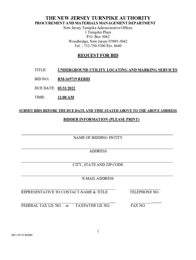 THE NEW JERSEY TURNPIKE AUTHORITY PROCUREMENT AND MATERIALS MANAGEMENT DEPARTMENT New Jersey Turnpike Administrative Offices 1 Turnpike Plaza P.O. Box 5042 Woodbridge, New Jersey 070955042 Tel. 7327505300