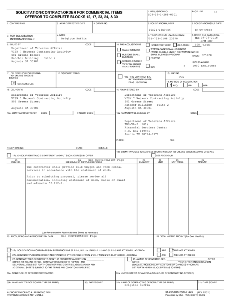 1. REQUISITION NO.SOLICITATION/CONTRACT/ORDER FOR COMMERCIAL ITEMS OFFER OR TO COMPLETE BLOCKS 12, 17, 23, 24, & 30 2. CONTRACT NO.3. AWARD/EFFECTIVE AVERAGE 1 OF4. ORDER NO.5. SOLICITATION NUMBER6.