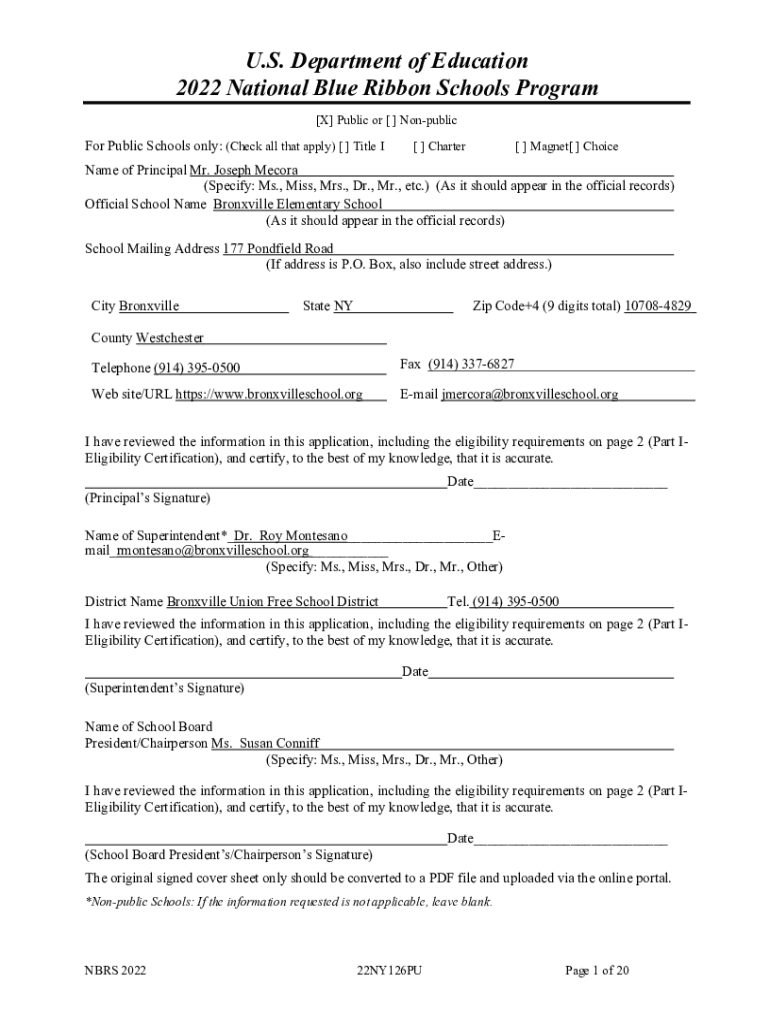 [X] Public or [ ] Nonpublic Public Schools only: (Check all that apply) [ ] Title I[ ] Charter[ ] Magnet[ ] ChoiceName of Principal