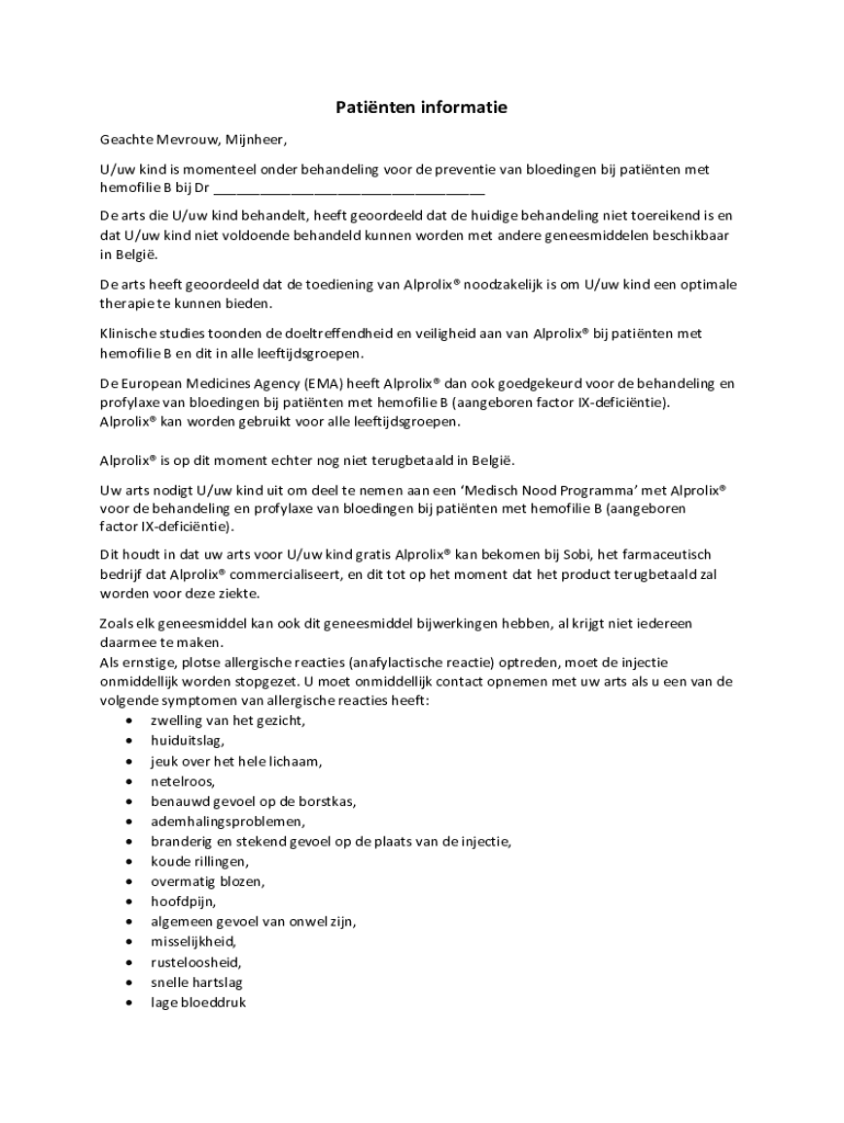 Pour remplir hemofilie - behandeling van, les patients doivent fournir leurs informations médicales et suivre les instructions du médecin.