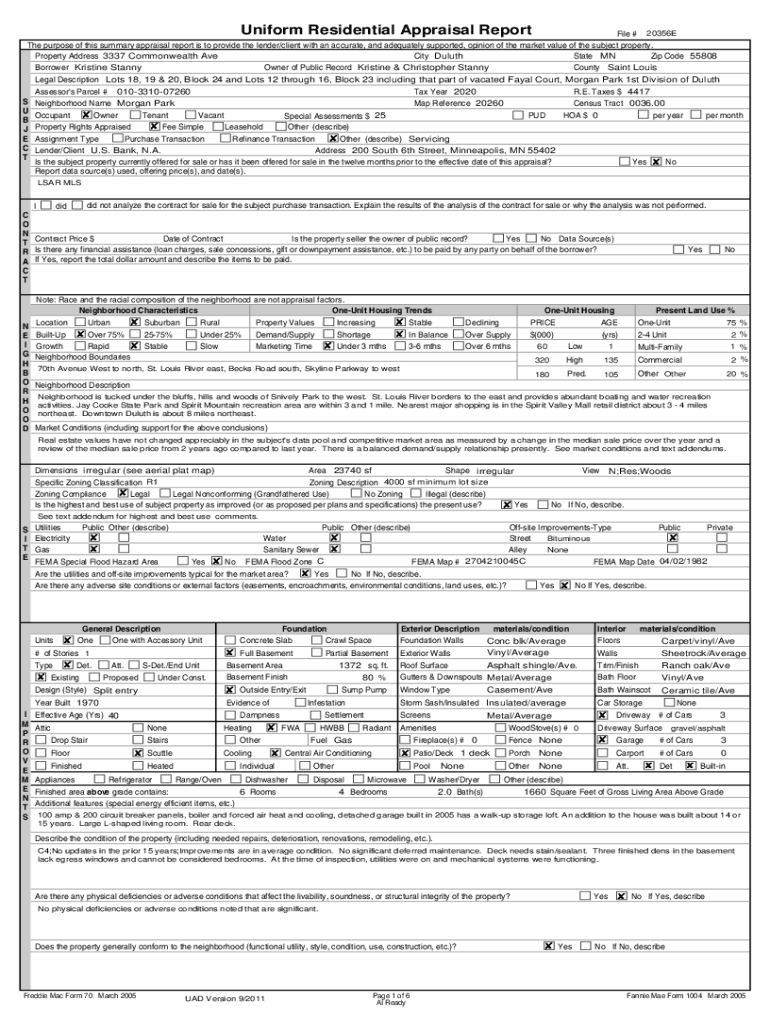 Uniform Residential Appraisal Reportable # 20356E The purpose of this summary appraisal report is to provide the lender/client with an accurate, and adequately supported, opinion of the market value