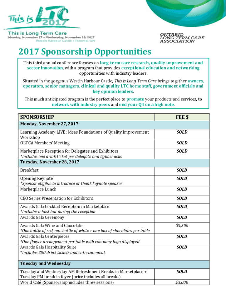 2017 Sponsorship Opportunities This third annual conference focuses on long term care research, quality improvement and sector innovation, with a program that provides exceptional education and networking