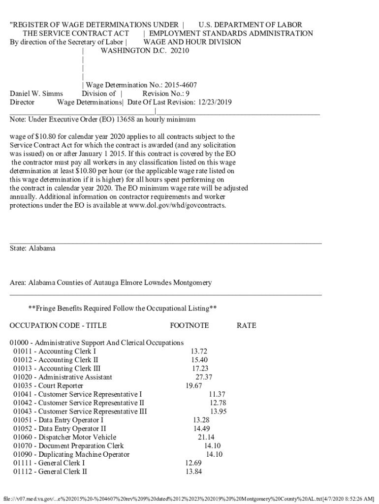 \” REGISTER OF WAGE DETERMINATIONS UNDER | U.S. DEPARTMENT OF LABOR THE SERVICE CONTRACT ACT | EMPLOYMENT STANDARDS ADMINISTRATION By direction of the Secretary of Labor | WAGE AND HOUR DIVISION
