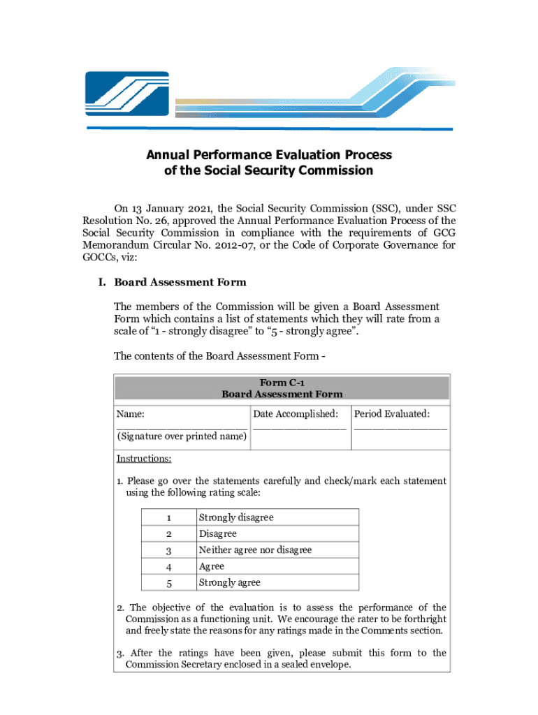 Annual Performance Evaluation Process of the Social Security Commission On 13 January 2021, the Social Security Commission (SSC), under SSC Resolution No. 26, approved the Annual Performance Evaluation