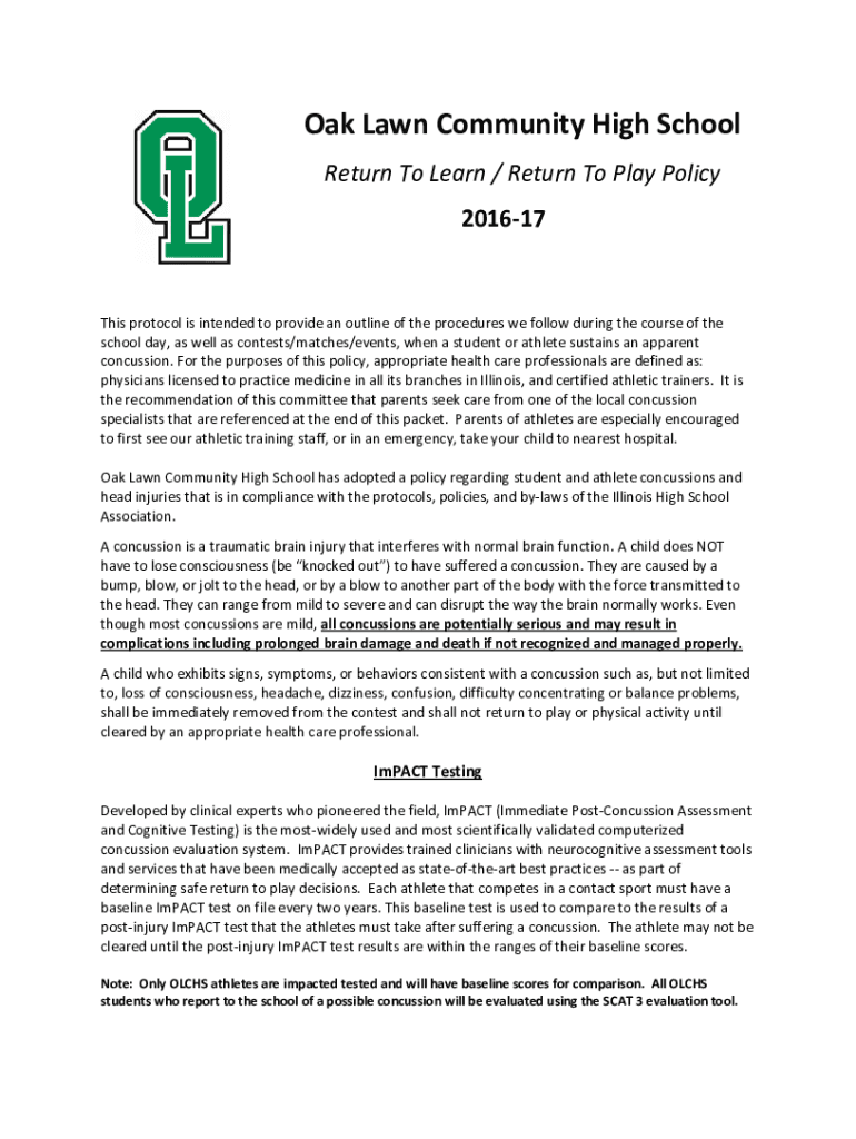 OakLawnCommunityHighSchoolReturnToLearn/ReturnToPlayPolicy