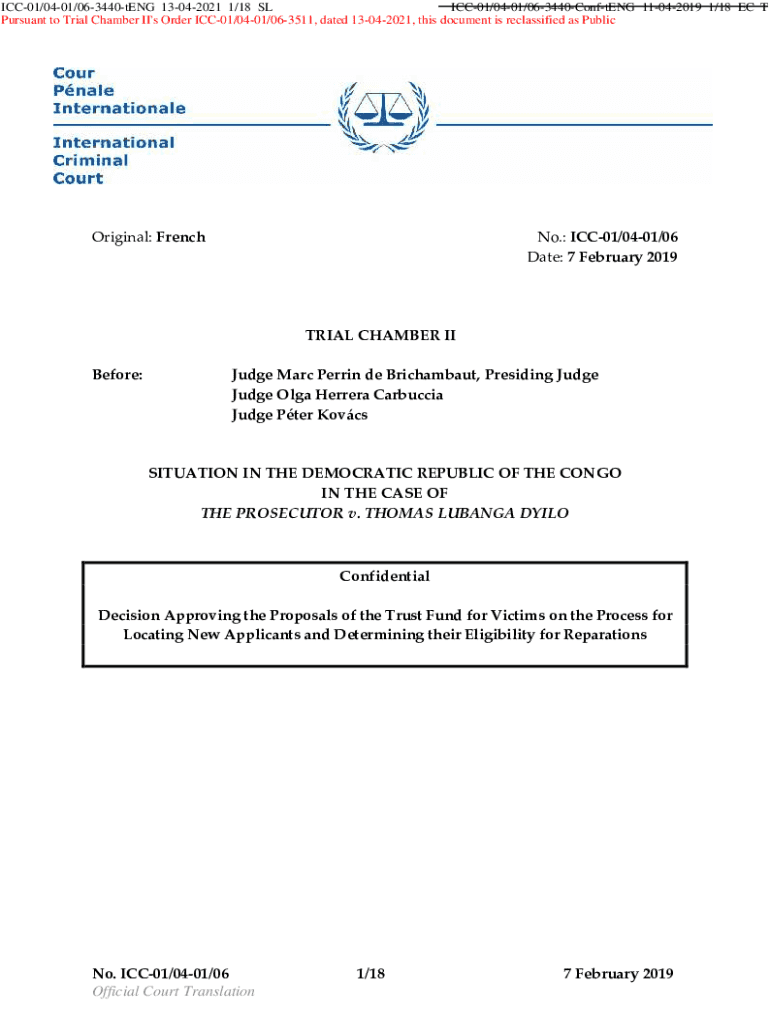 Get the free Decision Approving the Proposals of the Trust Fund for Victims on the Process for