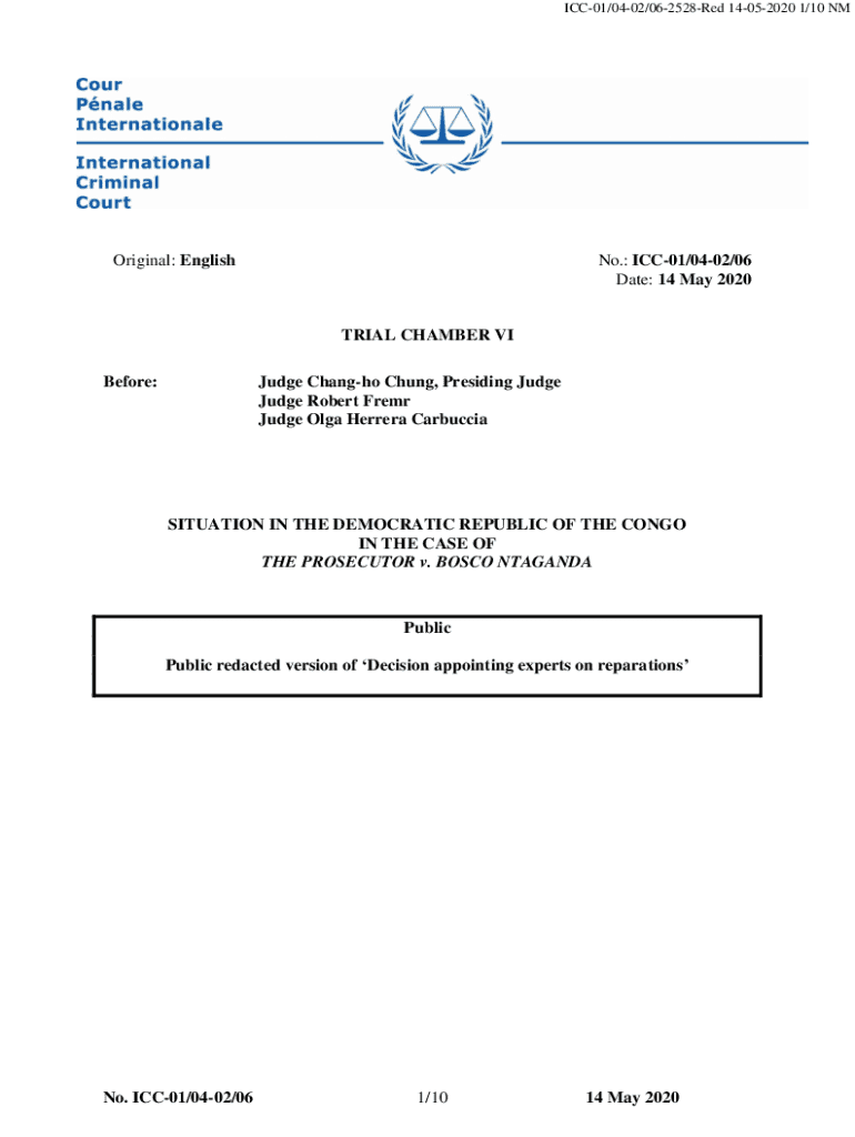 ICC01/0402/062528Red 14052020 1/10 Original: English No.: ICC01/0402/06Original: English No.: ICC01/0402/06