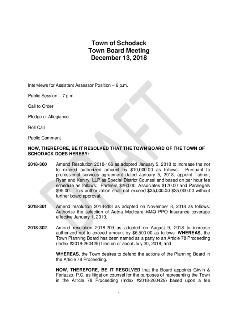 Town of Scholars Town Board Meeting December 13, 2018Interviews for Assistant Assessor Position 6 p.m. Public Session 7 p.m. Call to Order Pledge of Allegiance Roll Call Public Comment NOW, THEREFORE,