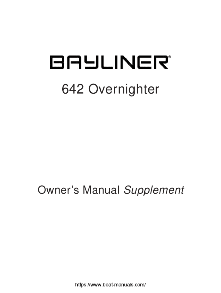 642 OvernighterOwners Manual Supplementhttps://www.boatmanuals.com/https://www.boatmanuals.com/Engine Serial Number: ___ Hull Identification Number:___ Hull Identification Number642 OvernighterThe