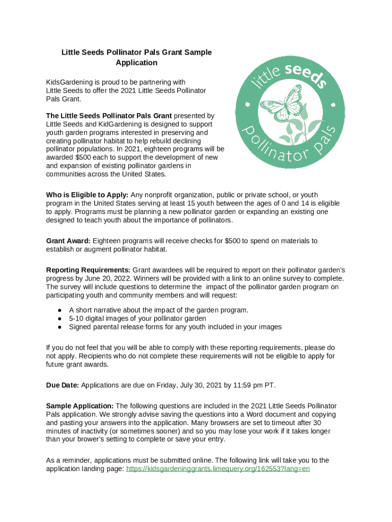 How to fill out Applications Open for Little Seeds Pollinator Pals Grant ...