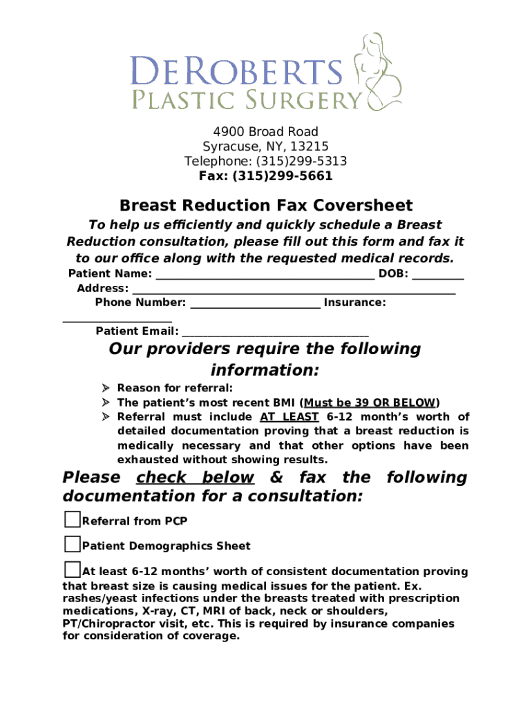 Frequently asked questions about Breast Reduction Fax Coversheet template